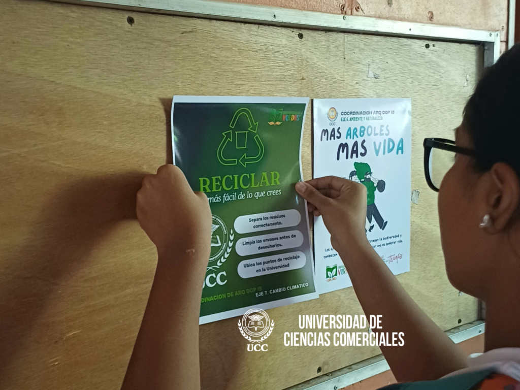 La Universidad de Ciencias Comerciales (UCC), Campus León, a través de la Coordinación de Arquitectura, Diseño Gráfico Publicitario e Ingeniería de Sistema y en articulación con el Programa de Universidades Verdes, desarrolló este jueves 6 de noviembre una significativa jornada de concientización ambiental, fortaleciendo su compromiso con la conservación de la Madre Tierra y el cumplimiento del Eje :6 Ambiente y Naturaleza de la Estrategia Nacional de Educación.