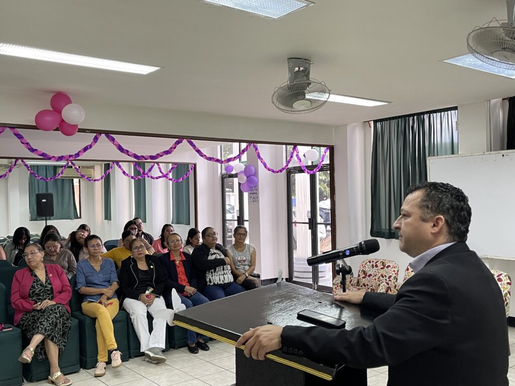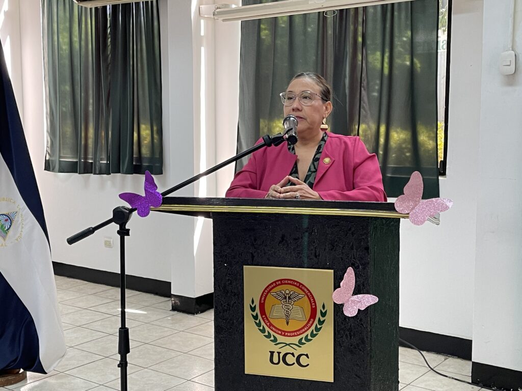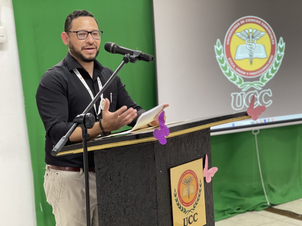 Durante la bienvenida, el Rector de la UCC, maestro Eddy Baltodano, destacó el compromiso, la responsabilidad y la dedicación con que las colaboradoras desempeñan sus funciones, resaltando que el trabajo de las mujeres es fundamental para continuar fortaleciendo la calidad y el crecimiento de la universidad.