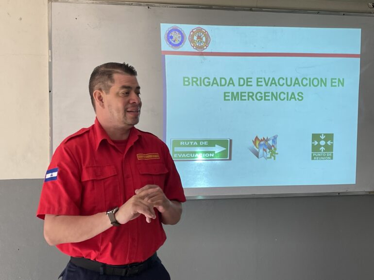 La capacitación estuvo a cargo de Alberto España, instructor de la Escuela de Bomberos, quien compartió con las participantes importantes técnicas para la atención de emergencias, entre ellas procedimientos básicos de primeros auxilios y métodos adecuados de evacuación en situaciones de riesgo.