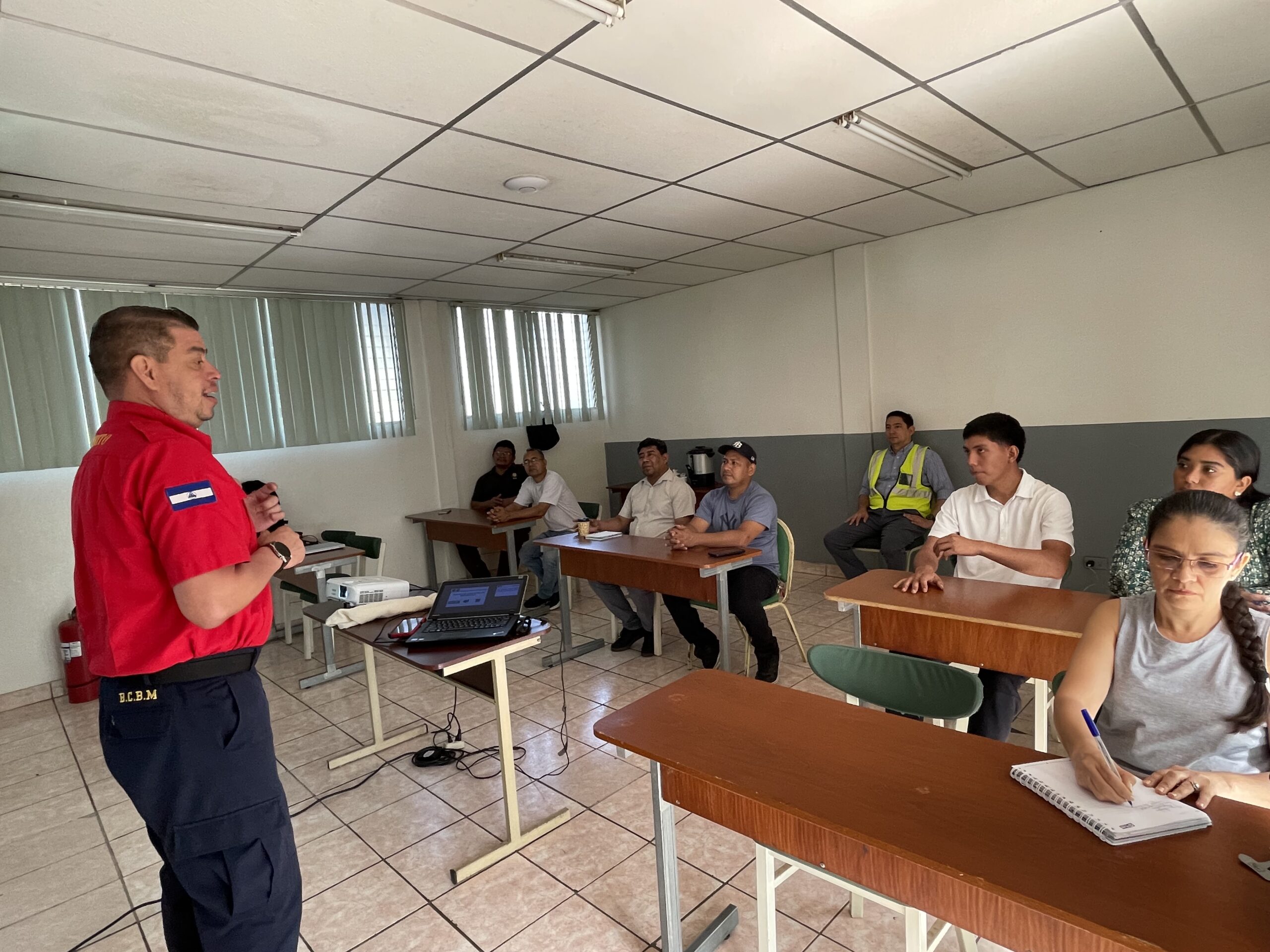 Con el propósito de fortalecer la preparación institucional ante situaciones de riesgo, colaboradores de distintas áreas de la Universidad de Ciencias Comerciales UCC, Sede Central Managua, participaron este jueves 5 de marzo en una capacitación teórico-práctica sobre Evacuación en Emergencias y Seguridad, desarrollada por la Coordinación de Higiene y Seguridad Ocupacional y facilitada por el Benemérito Cuerpo de Bomberos de Managua.