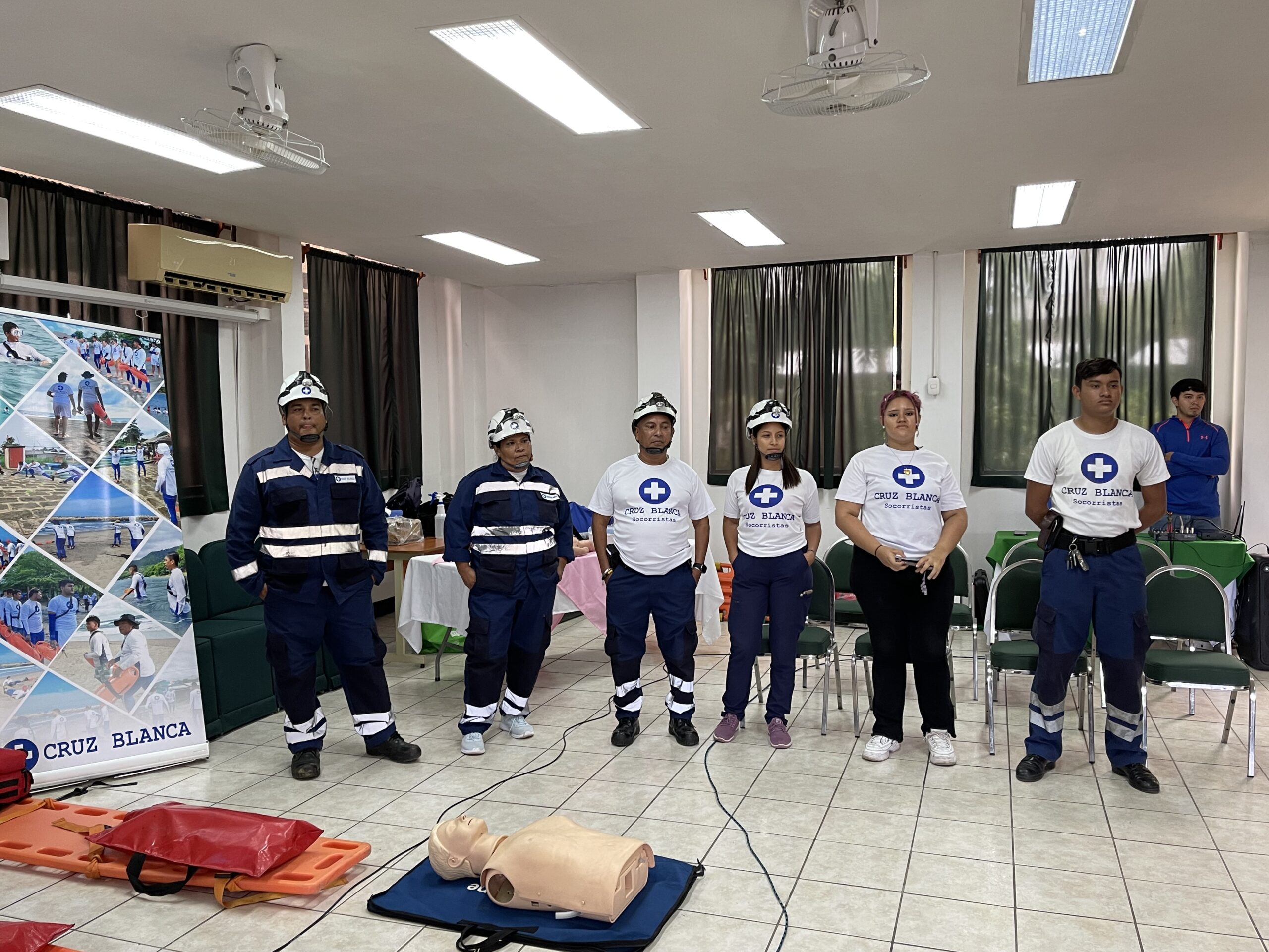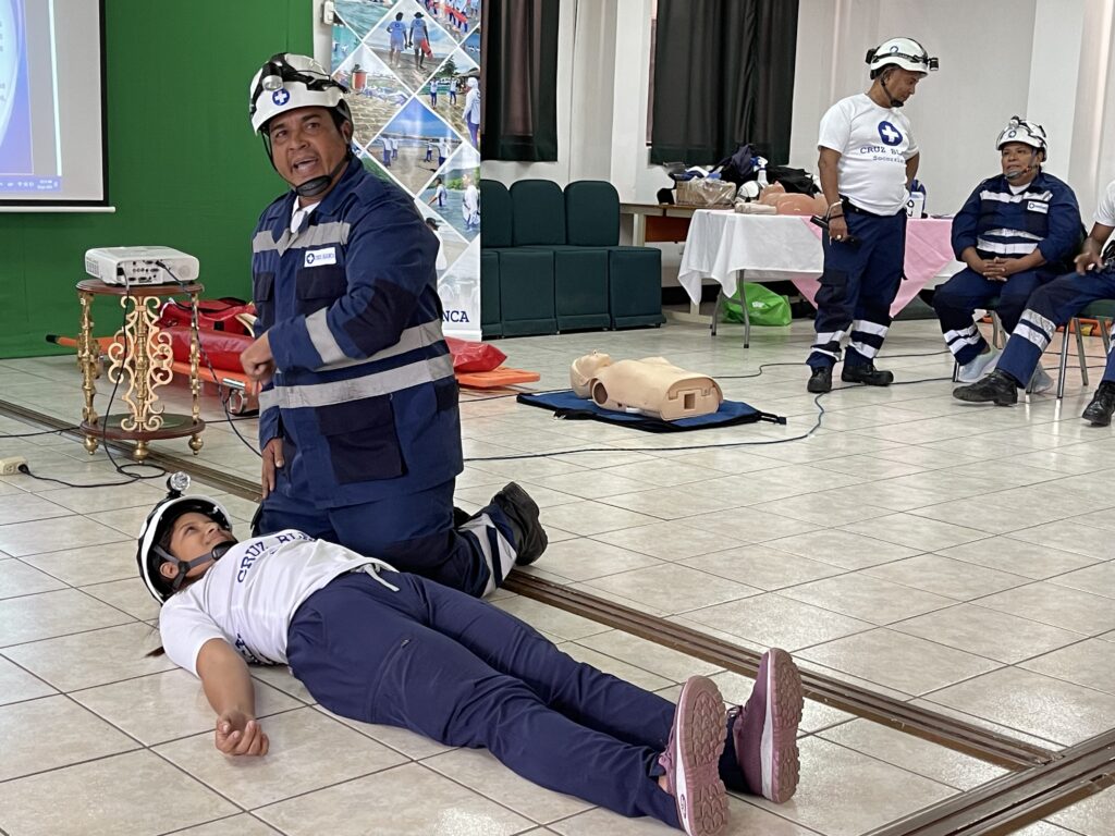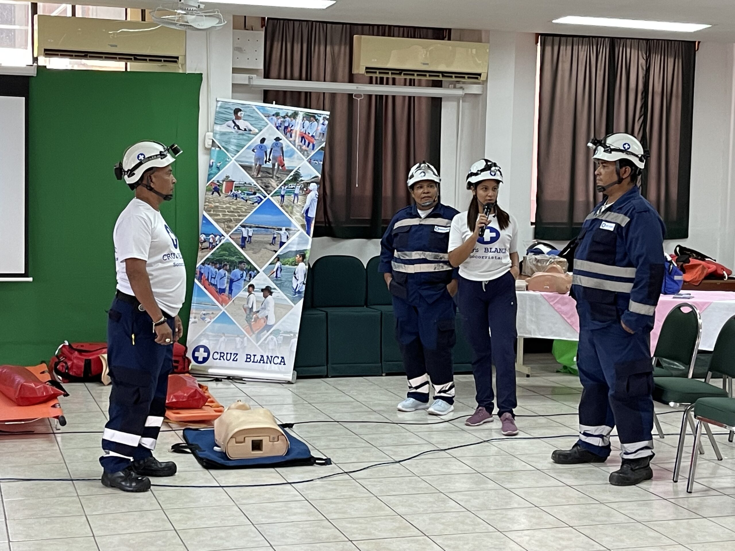 Durante la capacitación, los asistentes conocieron técnicas esenciales como la reanimación cardiopulmonar (RCP), control de hemorragias, atención de quemaduras, entre otras. La metodología se desarrolló de forma práctica, con demostraciones claras y guiadas por profesionales de la Cruz Blanca.
