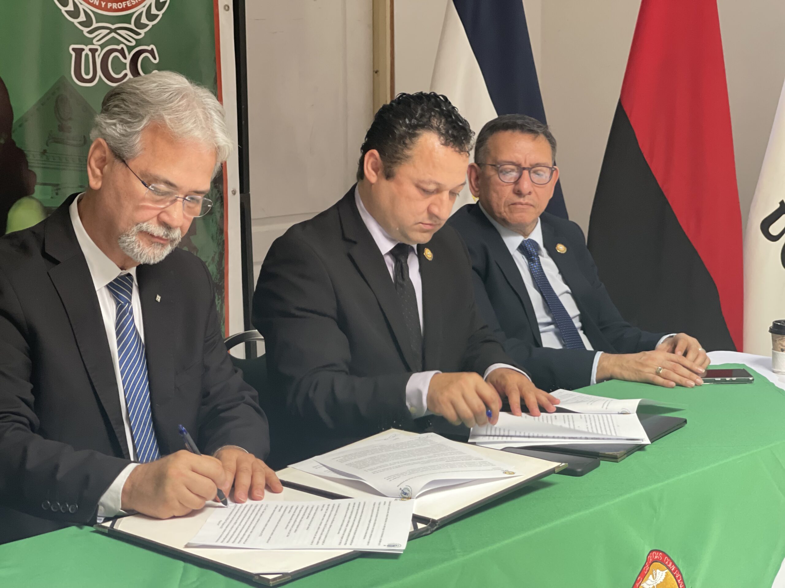 La Universidad de Ciencias Comerciales (UCC) y el Instituto de Estudio e Investigación Jurídica (INEJ), suscribieron este miércoles 26 de noviembre, un convenio de colaboración académica y científica orientado a impulsar programas de educación continua, posgrados y proyectos de investigación que fortalezcan el ejercicio profesional en las ciencias jurídicas.