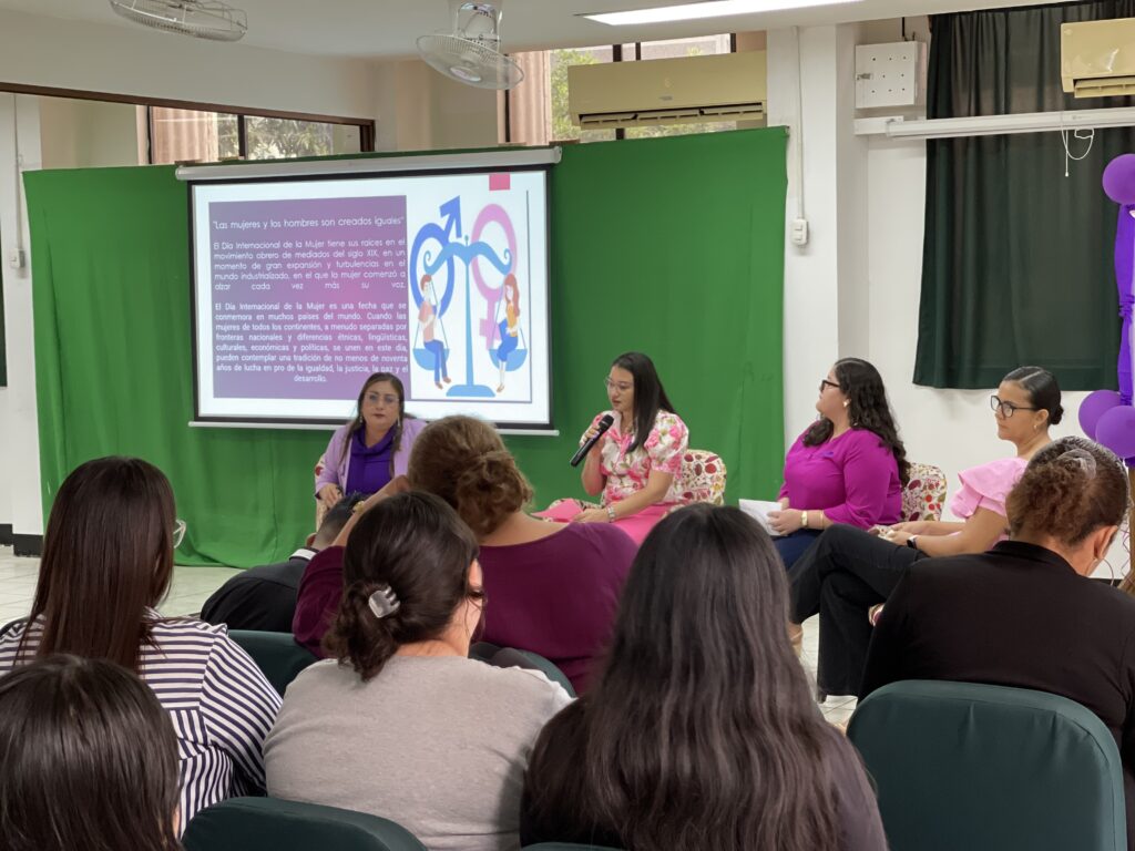 El conversatorio, organizado por la Coordinación de Bienestar Estudiantil, contó con la participación de las estudiantes de la carrera de Derecho; Meyling González, Verónica Benavente y Andrea Vega, quienes compartieron sus reflexiones y puntos de vista en torno a esta importante fecha. El espacio fue moderado por Yolayna Madrigal, Coordinadora de la carrera de Derecho.