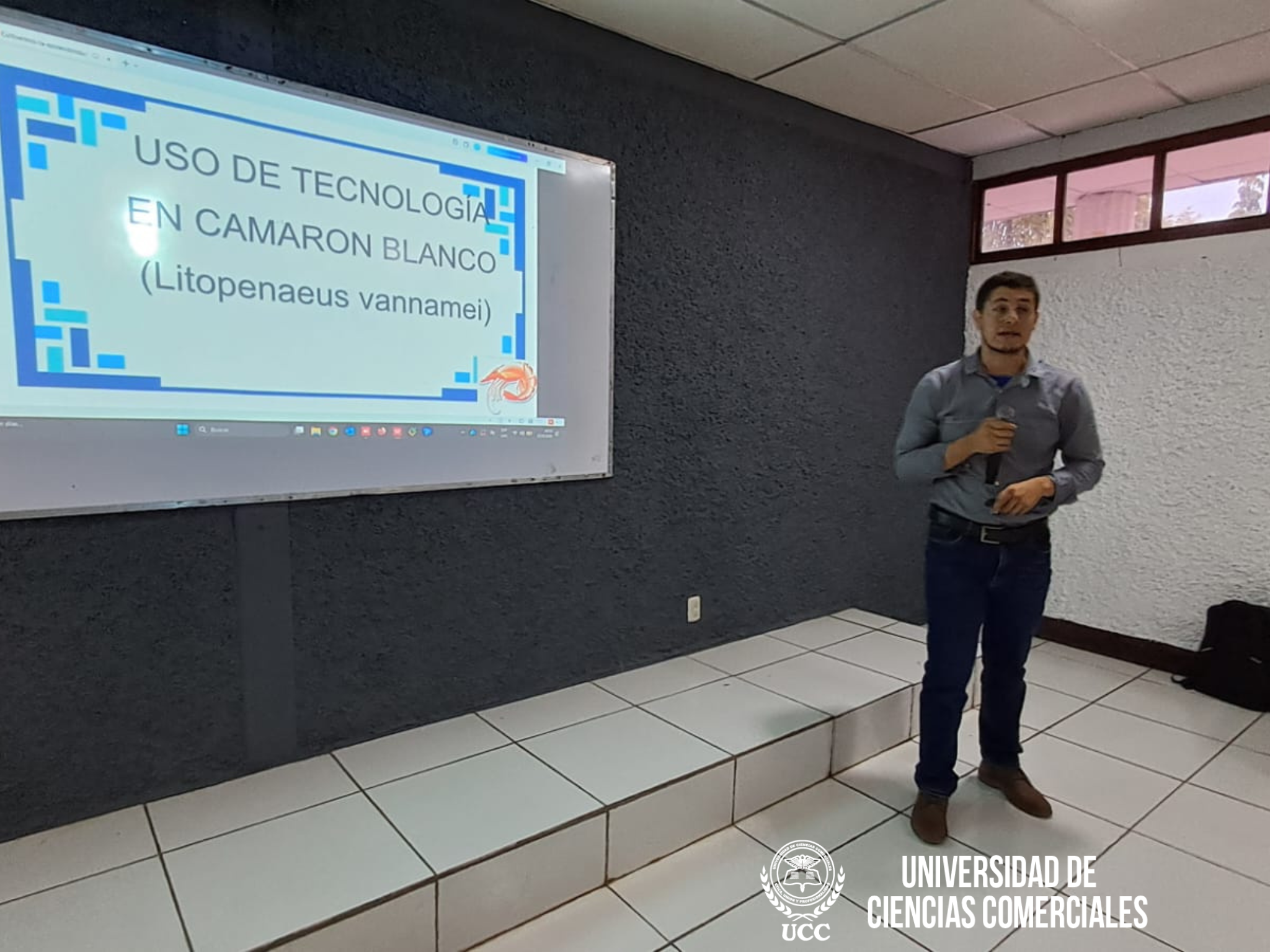 Como parte del evento, se desarrolló una capacitación especializada en el área de Agronomía bajo el tema “Uso de Tecnología en el Cultivo de Camarón”, impartida por el ingeniero acuícola Rudis Aplicano López. Durante su intervención, destacó que la producción moderna de camarón ha evolucionado significativamente gracias a la incorporación de tecnologías como sensores, sistemas de aireación inteligente y monitoreo en tiempo real, lo que permite optimizar los procesos productivos y generar mayor impacto. Subrayó además que el futuro del sector radica en la integración de la técnica con la ciencia, formación que inicia desde las aulas”.