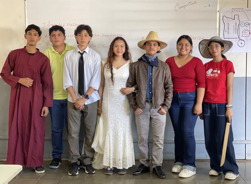 Como parte del proceso de aprendizaje, los estudiantes desarrollaron una dramatización en la que representaron algunos de los principales acontecimientos históricos que han marcado la historia de Nicaragua, entre ellos la Cruzada Nacional de Alfabetización y las reformas agrarias de los años 80. A través de esta metodología participativa, los jóvenes lograron contextualizar los hechos históricos, comprender su impacto social y reflexionar sobre la importancia de la soberanía nacional en la construcción del país.