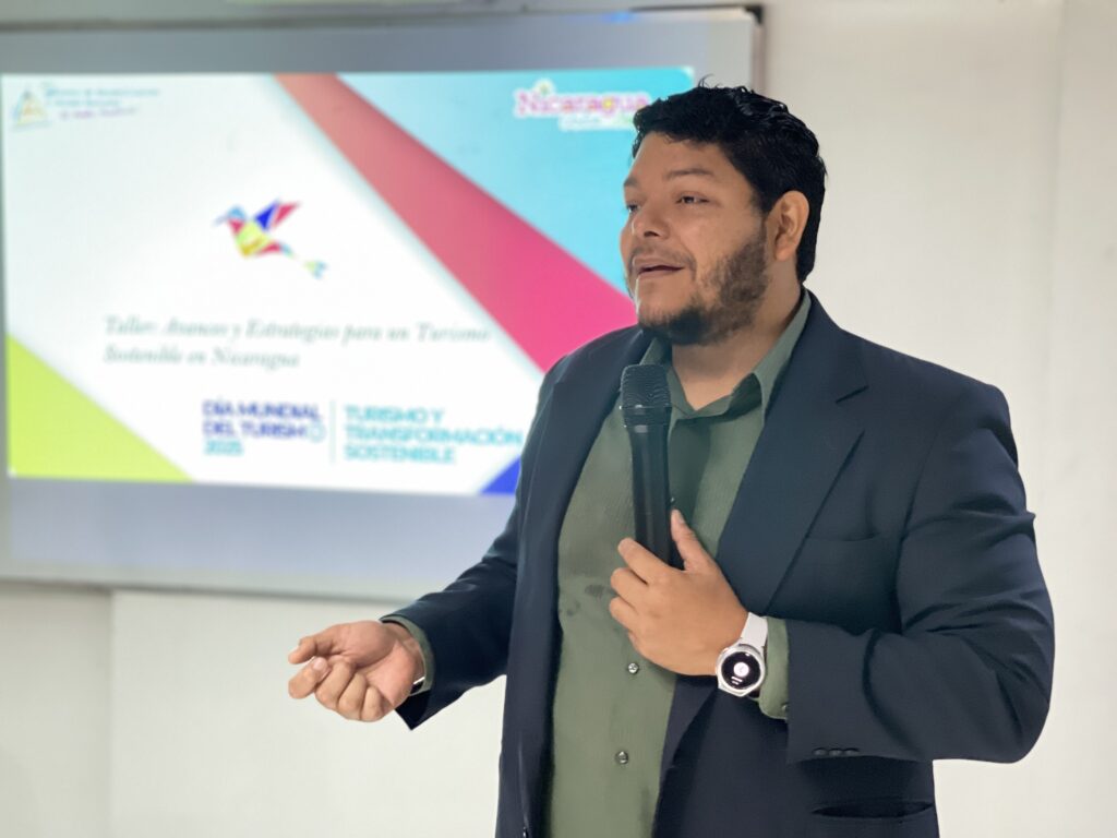 El conferencista también compartió datos relevantes sobre el comportamiento del turismo en Nicaragua, revelando que el 50.5% de los visitantes lo hacen para reencontrarse con familiares o amigos, mientras que el 35% viaja con fines vacacionales. Asimismo, señaló que el 73% de los turistas internacionales llegan al país por recomendaciones de familiares o amigos, y un 17.5% mediante plataformas digitales. En cuanto a las actividades más realizadas, mencionó el senderismo (13.5%), el surfing (11%) y la escalada de volcanes (9.8%).