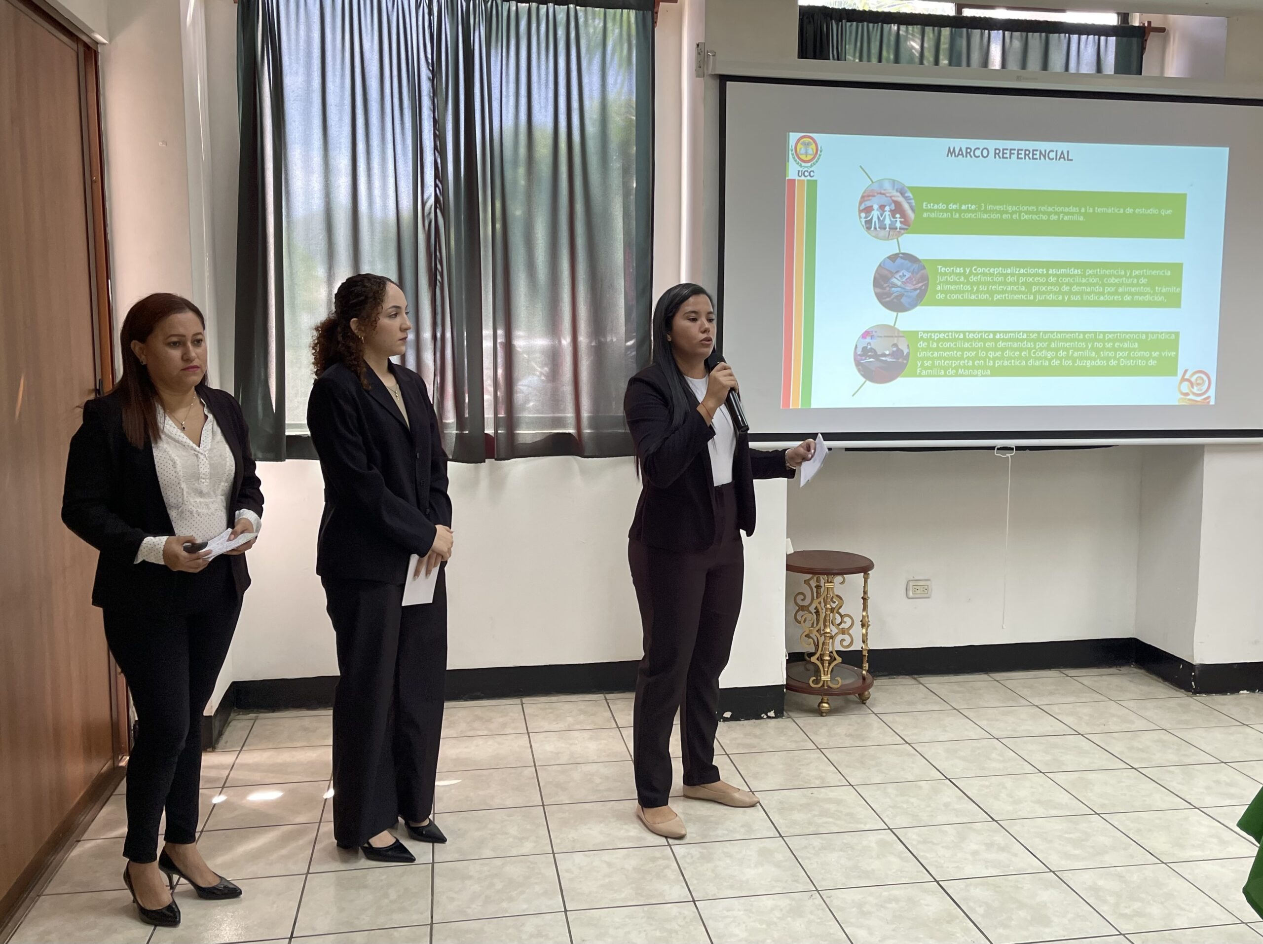 Por su parte, Michell Bustos, quien expresó su satisfacción por la formación recibida en la UCC, presentó junto a sus compañeras el trabajo; “Análisis de la pertinencia jurídica en los procesos de conciliación en la vía judicial en la resolución de conflictos, vinculados a pensión alimenticia en los Juzgados de Distrito de Familia”. “En la carrera de Derecho recibimos las herramientas necesarias para desempeñarnos con ética y responsabilidad en el ámbito jurídico”.