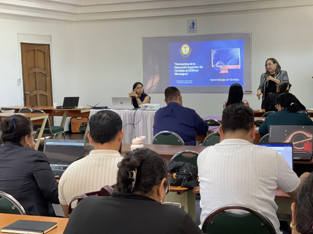 La actividad reunió a maestros y directoras académicas de la Sede Central y de los Campus León y Matagalpa, con el propósito de fortalecer las capacidades institucionales y docentes para el desarrollo de la acción didáctica, enfocada en la construcción del aprendizaje y en la formación integral de los futuros profesionales con calidad.