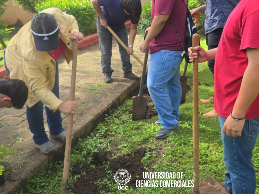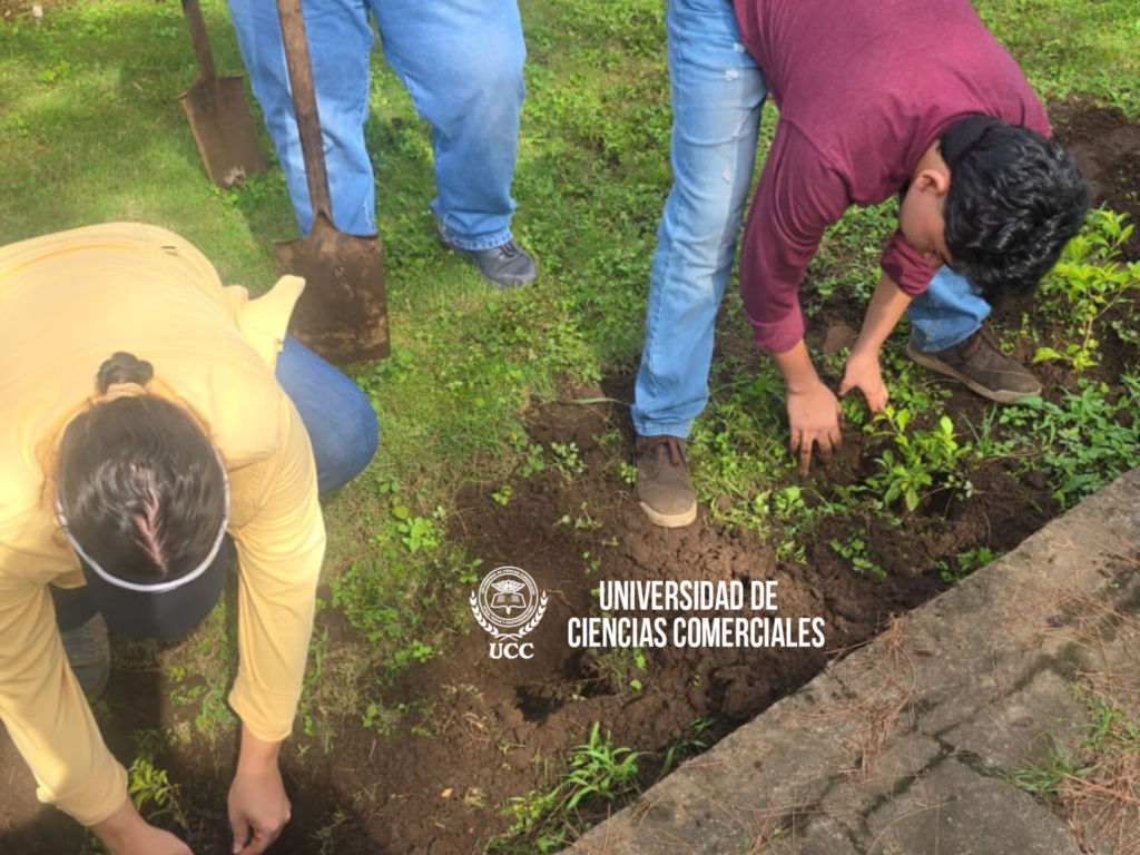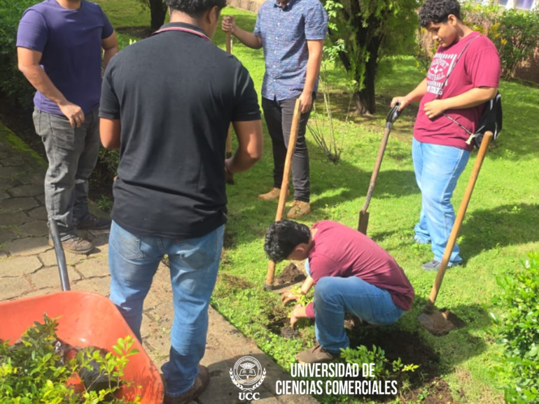 La Universidad de Ciencias Comerciales (UCC) Campus León, a través de la Coordinación de la carrera de Agronomía con mención en Agroindustria, realizó la mañana de este jueves 2 de octubre una jornada de reforestación en los jardines del campus.