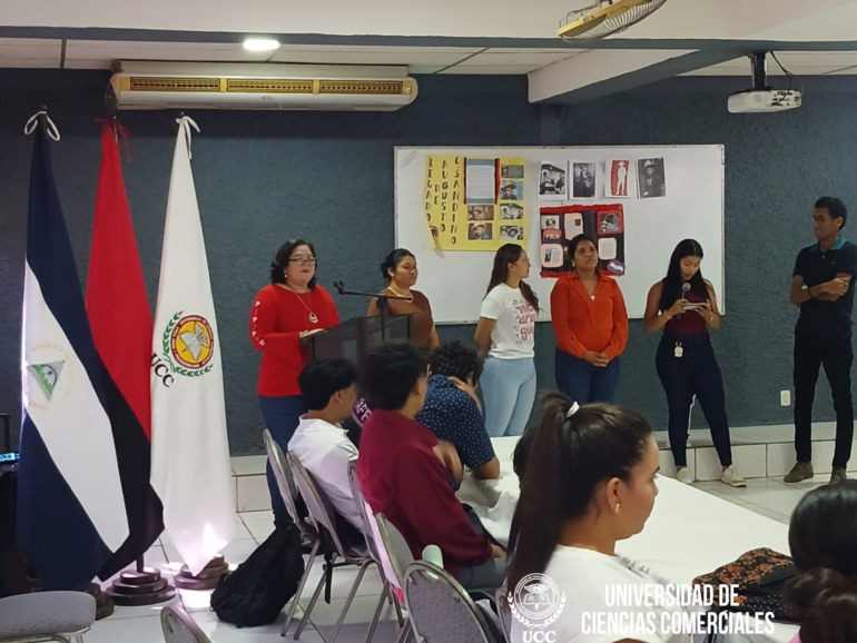 En el marco del componente de Identidad Nacional y Orgullo Patrio, la Universidad de Ciencias Comerciales UCC, Campus León, a través de la Coordinación de Ciencias Económicas Empresariales desarrolló el sábado 14 de febrero una actividad académica con estudiantes de la carrera de Ciencias Económicas Empresariales en modalidad sabatina, orientada al análisis del contexto nacional como parte de la formación integral promovida por el modelo educativo institucional.