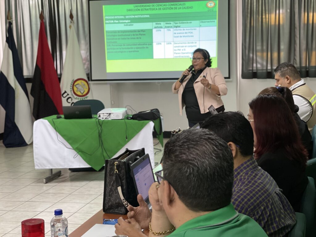 La actividad, organizada por la Dirección Estratégica en Gestión de la Calidad, reunió a Directores de áreas académicas y administrativas de la Sede Central Managua, Campus León y Campus Matagalpa, quienes presentaron los avances de sus planes de acción (POA), en el marco de los cinco procesos integrales; Gestión Institucional, Formación, Vinculación, Extensión, Internacionalización e Investigación.