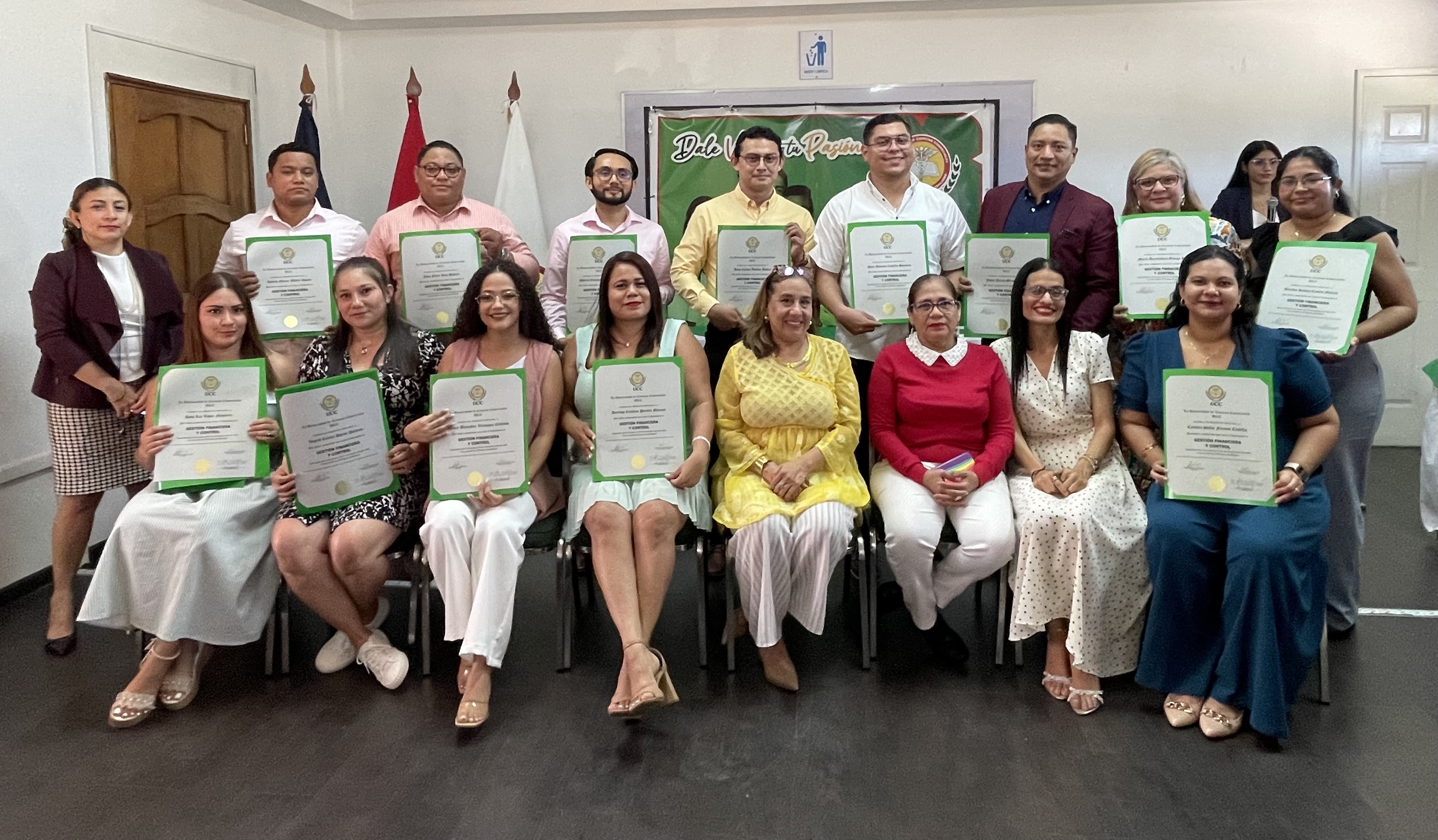 Más de 60 profesionales recibieron este sábado 13 de diciembre sus diplomas tras culminar con éxito los Diplomados en Seguridad y Salud Laboral, Dirección Empresarial y Marketing, y Gestión Financiera y Control, impartidos por la Universidad de Ciencias Comerciales (UCC), Sede Central Managua, como parte de su oferta de formación continua.