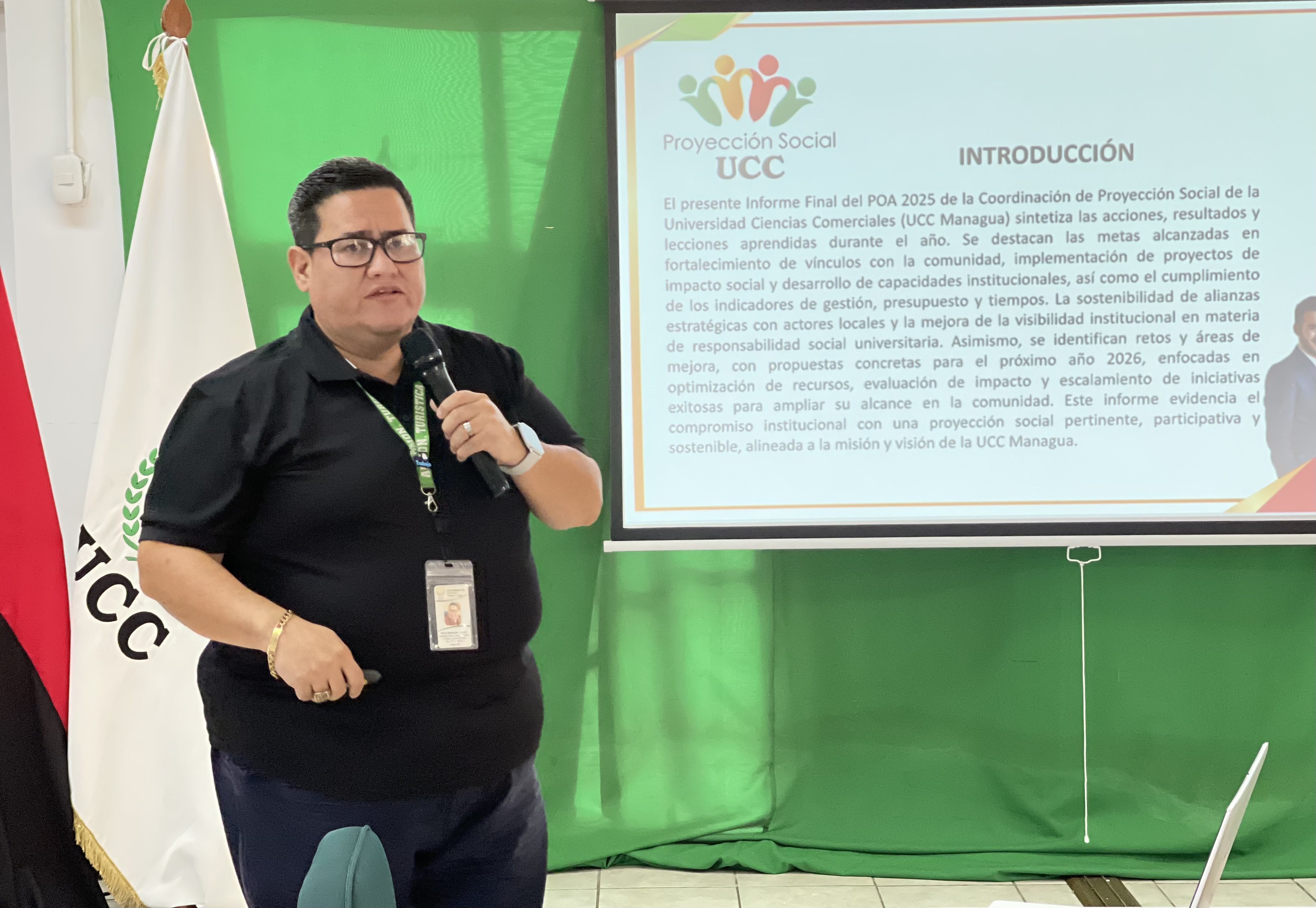 Durante las palabras de bienvenida, el Rector de la UCC, maestro Eddy Baltodano, destacó la importancia del trabajo articulado y del compromiso colectivo para el cumplimiento de las metas institucionales. “Los logros alcanzados son el resultado del esfuerzo conjunto de cada una de las áreas que conforman nuestra universidad. Trabajar en equipo nos permite avanzar con visión, responsabilidad y enfoque en la excelencia académica”, expresó.