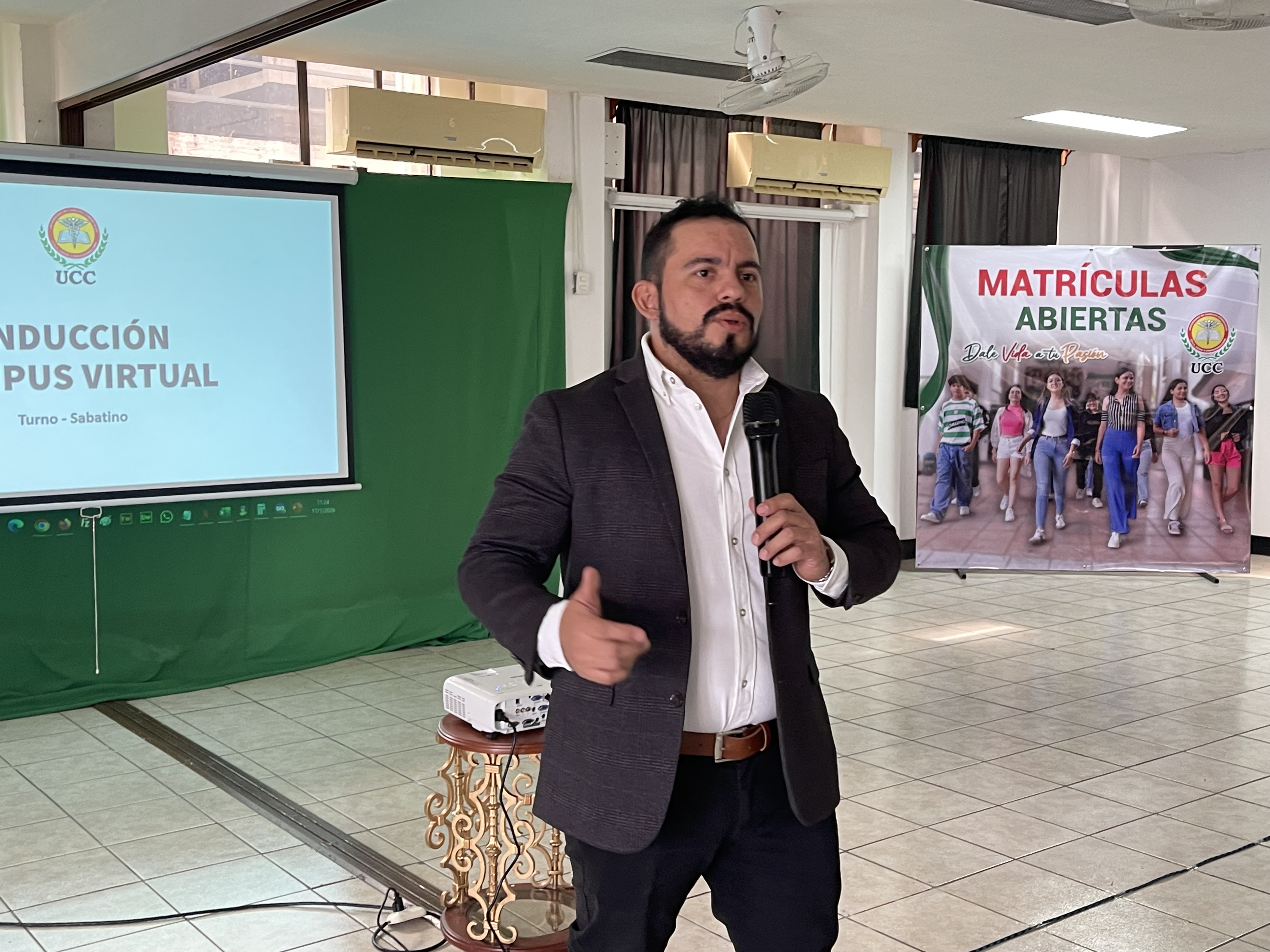 Asimismo, la Secretaria General, maestra Marta Potosme, brindó información relevante sobre los procesos de matrícula de reingreso, convalidaciones e inscripciones de asignaturas. Por su parte, la Licenciada Francisca Pupiro, Responsable de Cartera y Cobro, explicó aspectos relacionados con la gestión financiera. El Director TIC, Ulises Rivera, orientó a los estudiantes sobre el uso de las herramientas tecnológicas para matrícula, inscripciones y pagos en línea, mientras que Lester Salgado, Director de UCC Virtual, ofreció una capacitación práctica sobre el manejo de la plataforma virtual institucional.